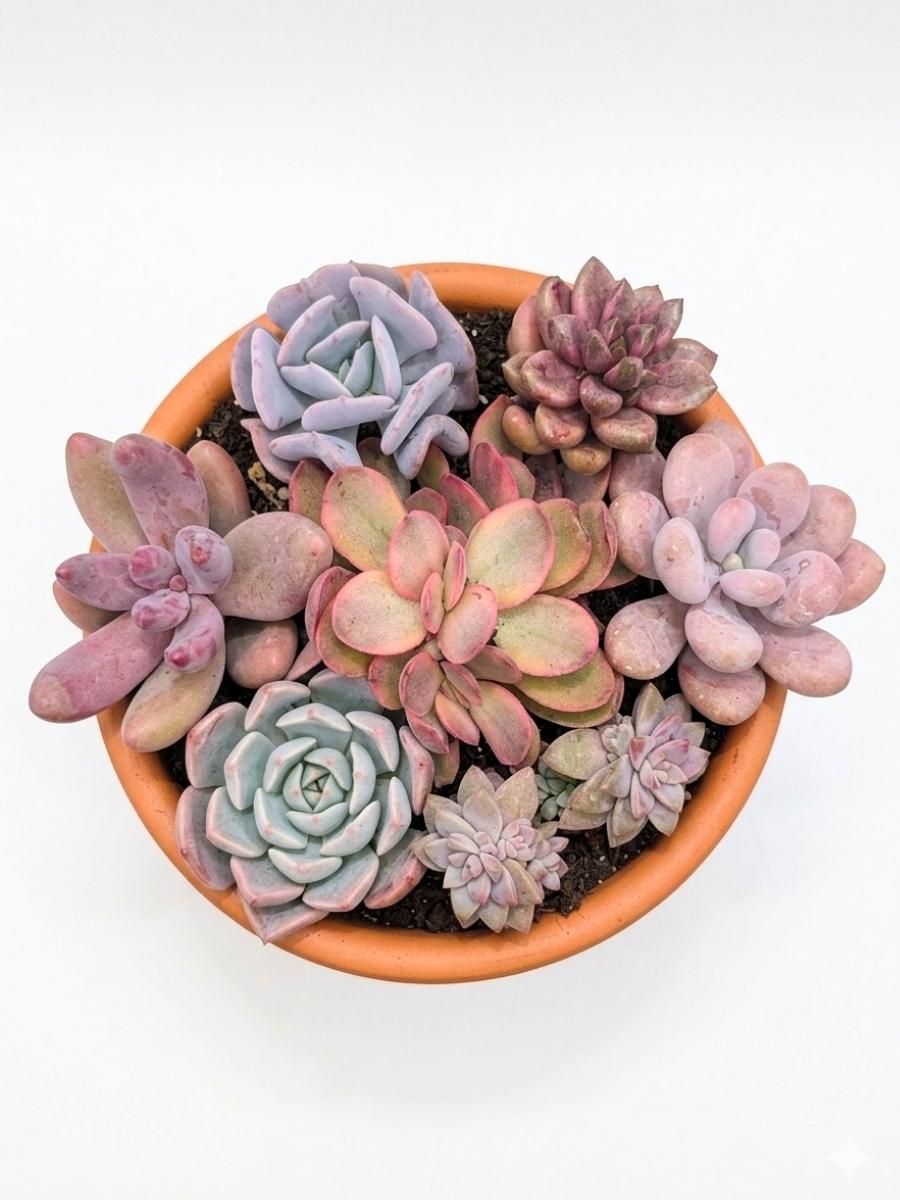Una promesa de amor en tonos rosados para mamá, con 7 suculentas cuidadosamente seleccionadas 💖. Composición Suculentas Pinky combina la belleza natural de las plantas con la calidez de la terracota, creando un arreglo monocromático en tonos rosa que simboliza la ternura, la dulzura y el vínculo único entre madre e hija o hijo. Ideal para el Día de la Madre, su cumpleaños o cualquier ocasión especial.