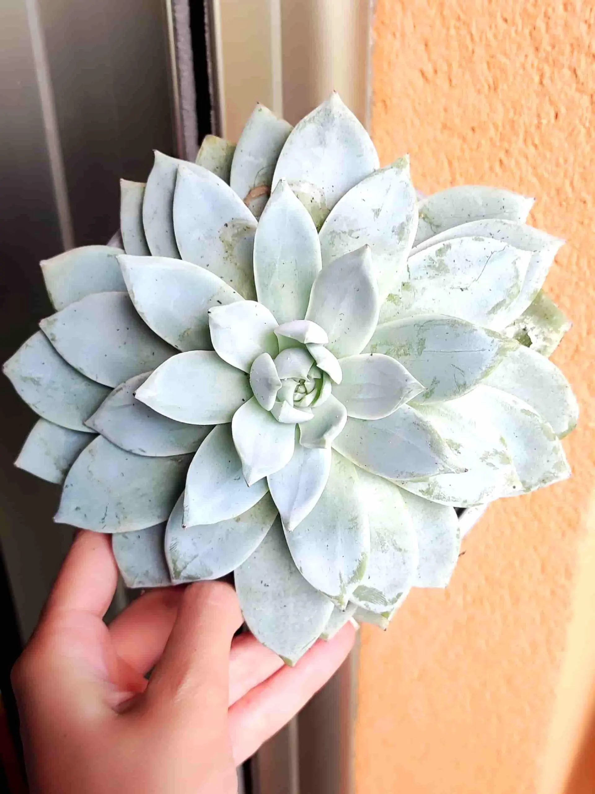 Dudleya Brittonii es una suculenta perenne y resistente, con rosetas grandes de hojas plateadas cubiertas de pruina que le dan un aspecto blanquecino único.