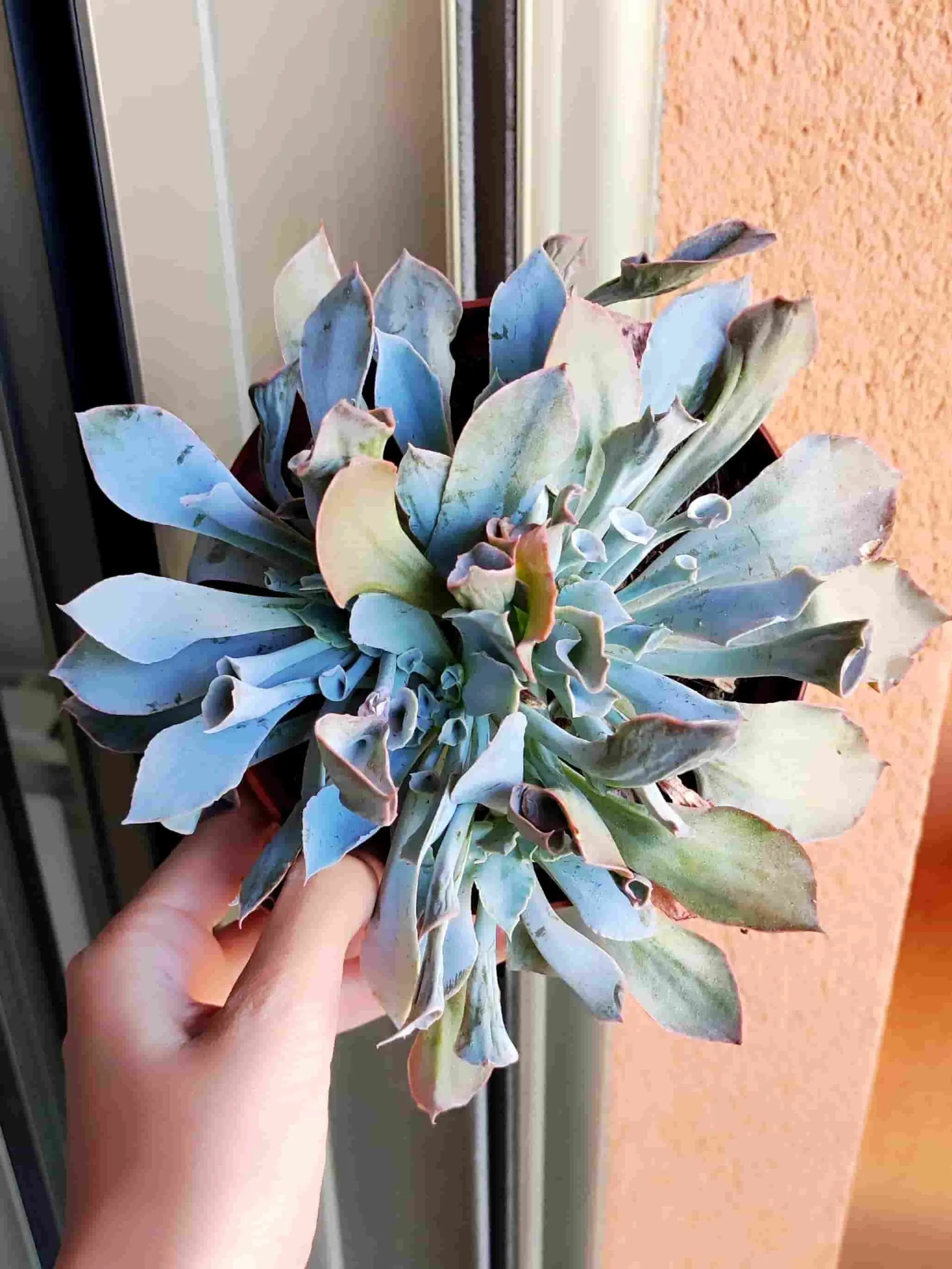 La Echeveria Trumpet Pink es una de las suculentas más locas y singulares que hemos visto nunca. Las hojas de color azulado a lavanda se enrollan en tubos acampanados en forma de trompeta.