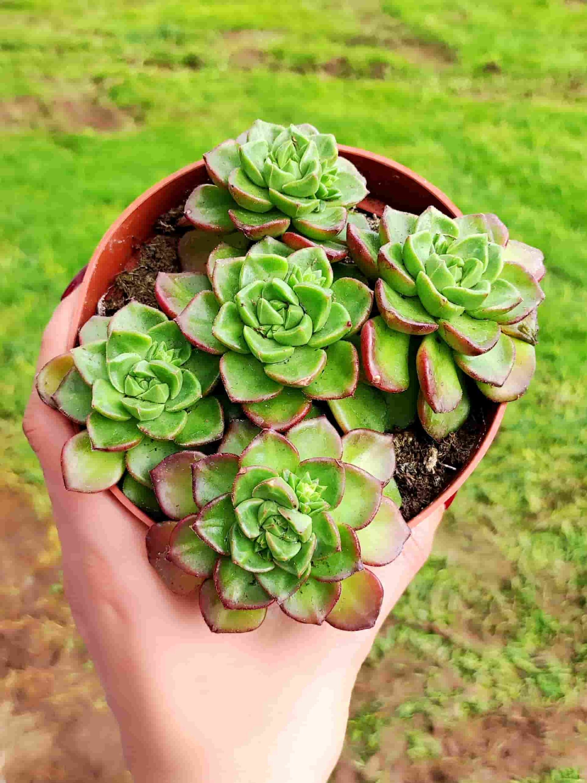 La Sedeveria Letizia es una suculenta de hojas de color verde brillante, con bordes que se vuelven de un atrevido rojo intenso bajo una exposición solar suficiente.